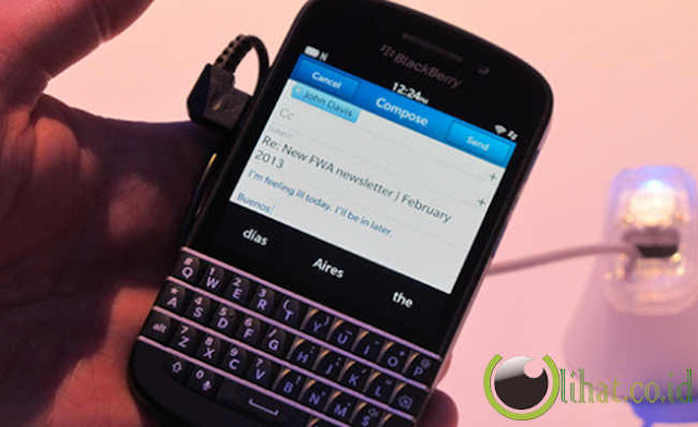 [lihat.co.id] - BlackBerry Q10 kabarnya akan segera dipasarkan. Jika BlackBerry Z10 mengusung layar sentuh, maka Q10 akan memakai keyboard qwerty yang selama ini menjadi ciri khas BlackBerry.